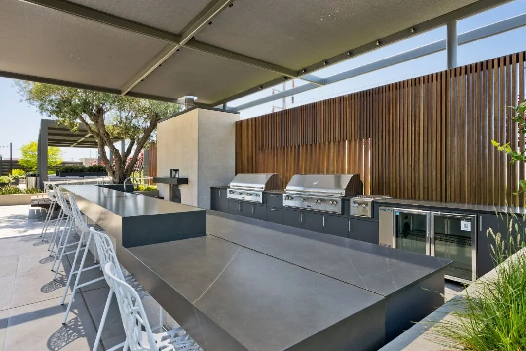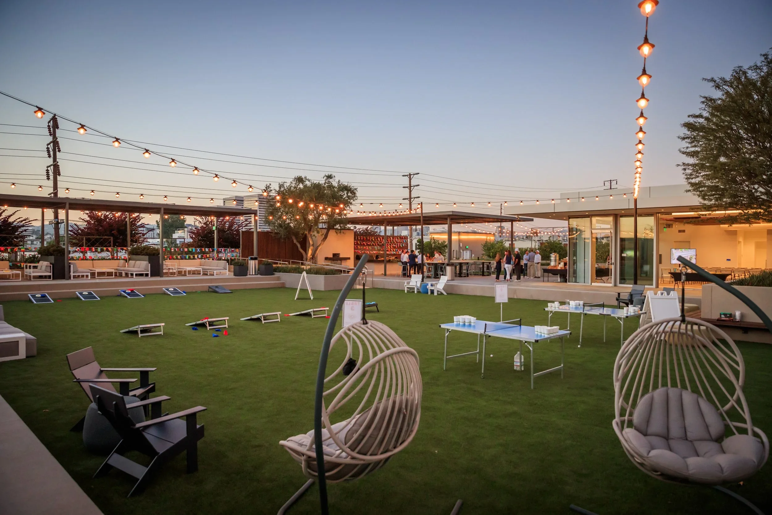 Over an acre of private outdoor space, the amenity deck features an event lawn, exhibition kitchen, Japanese Biergarten, cabana’s and sports courts.